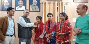 एस एम जे एन कॉलेज की छात्राए अर्शिका, अपराजिता,और शुभी कुर्ल को प्राचार्य कार्यलय में स्वागत