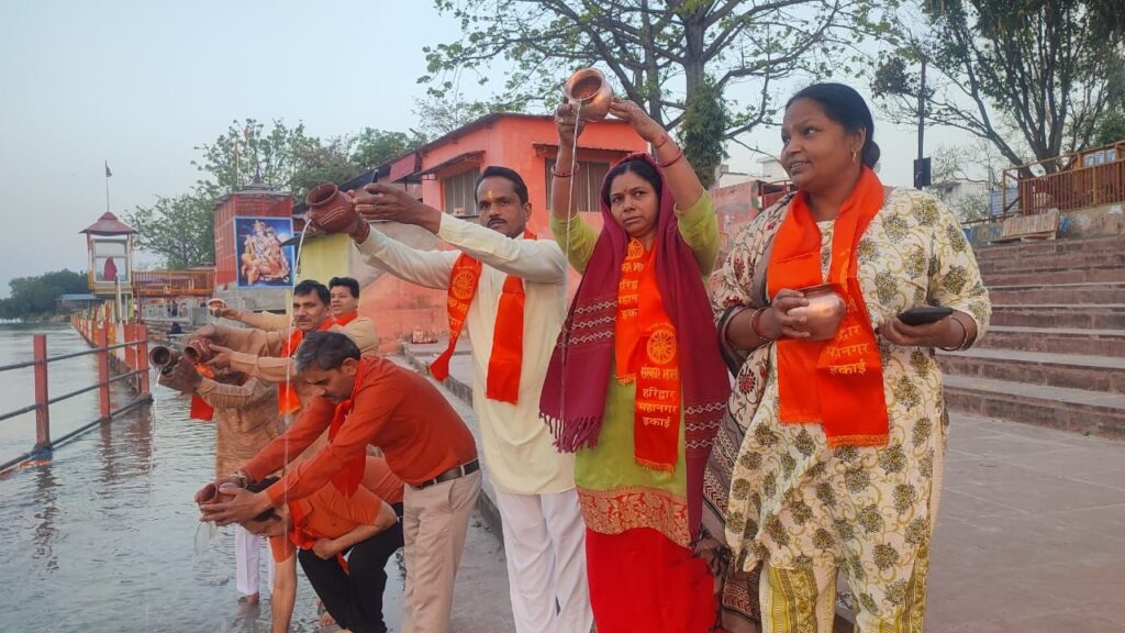 हरिद्वार, हर्षिता। आज दिनाँक 9 अप्रैल दिन मंगलवार को नव संवत्सर, हिंदू नववर्ष के शुभ अवसर पर संस्कार भारती महानगर इकाई, हरिद्वार के सदस्यों द्वारा हरिद्वार के गोविंदपूरी घाट पर मां गंगा में स्नान, पूजन और सूर्य देव को जल अर्पित कर नव वर्ष का स्वागत किया गया है। एवम इसके