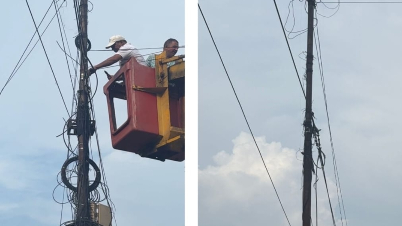 हरिद्वार, 9 सितम्बर, हर्षिता । नगर निगम हरिद्वार द्वारा अवैध तथा अनियंत्रित ढंग से लगाए गए तारों के जंजाल के विरुद्ध कार्यवाही गतिमान रखते हुए हरिद्वार रेलवे स्टेशन से सहगल पेट्रोल पम्प तक नगर निगम के स्ट्रीट लाइट पोल पर लगाए गए डिश टीवी तथा इंटरनेट फाइबर के तारों को हटाया गया। नगर निगम द्वारा 4 सितम्बर को शिवमूर्ति चौक से लेकर रेलवे स्टेशन तक अवैध रूप से लगे तारों को हटाया गया था। इसी क्रम को आगे बढ़ाते हुए नगर निगम तारों को हटाने की कार्रवाई की जा रही है। मध्य हरिद्वार, ज्वालापुर, कनखल, खड़खड़ी, भीमगोड़ा सहित पूरे शहर में तार हटाने की कार्रवाई निरंतर की जाएगी।