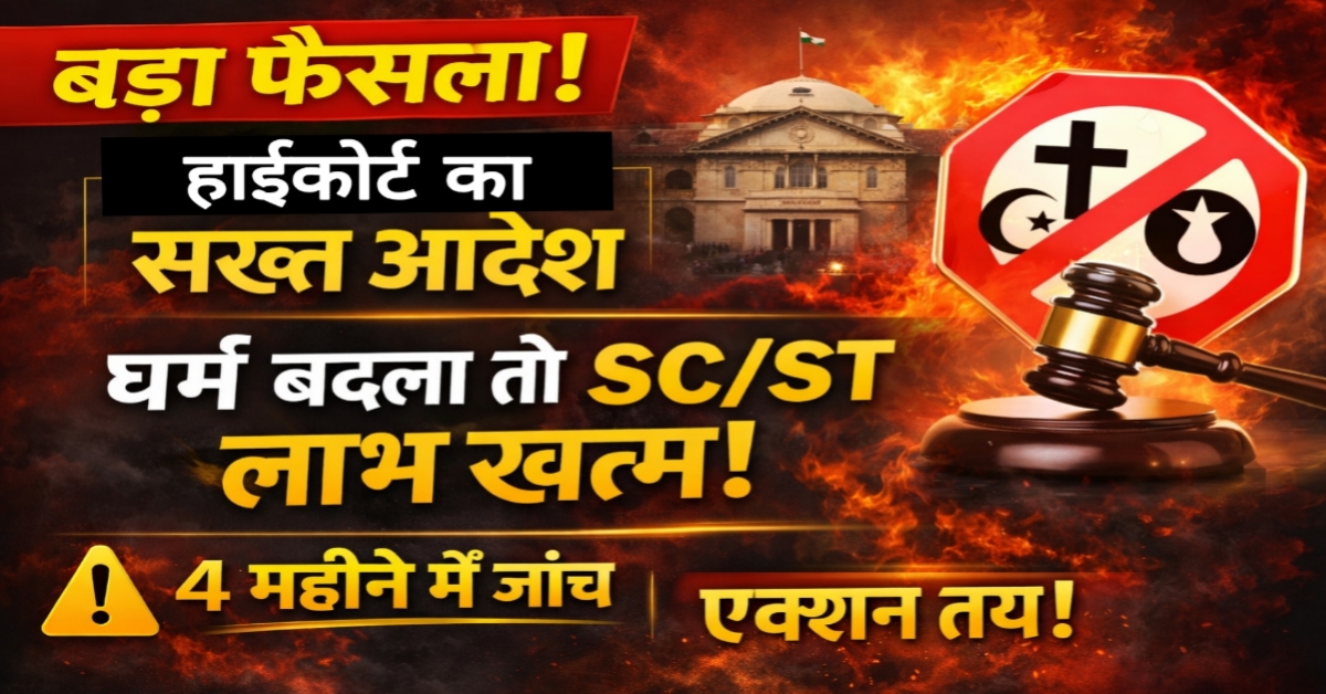 Divya Times India। Allahabad High Court ने धर्म परिवर्तन और अनुसूचित जाति/जनजाति (SC/ST) लाभ को लेकर अहम फैसला सुनाया है। कोर्ट ने स्पष्ट कहा कि जो व्यक्ति हिंदू, सिख या बौद्ध धर्म से हटकर अन्य धर्म अपनाता है, उसे SC/ST के लाभ का अधिकार नहीं रहेगा।