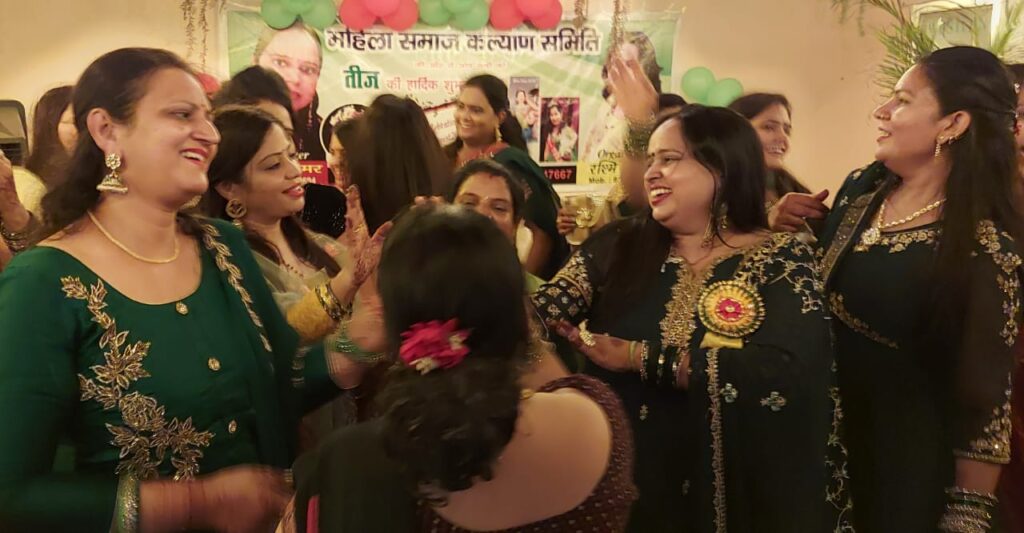 रुड़की,इमरान,देशभक्त।महिला समाज कल्याण समिति द्वारा तीज पर्व धूमधाम से मनाया गया।रामनगर स्थित आयोजित कार्यक्रम में महिलाओं द्वारा रंगारंग कार्यक्रम की प्रस्तुति दी गई।गीतों पर महिलाएं जमकर नाचीं और भजनों की भी प्रस्तुति दी गई।