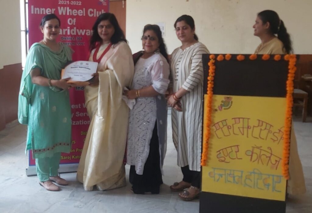 हरिद्वार,हर्षिता।शिक्षक दिवस के उपलक्ष में इनरव्हील हरिद्वार द्वारा की अध्यक्षा डॉ मनु शिवपुरी brand ambassadorबेटी बचाओ द्वारा भिन्न-भिन्न क्षेत्रों के विशेष प्रतिभावान अध्यापकों को सम्मानित किया गया इसमें ताइक्वांडो ,सेल्फ डिफेंस ,योगा -मेडिटेशन, स्कूल शिक्षक एवं ऑनलाइन क्लासेज के टीचर्स को सम्मानित किया गया ।यह सभी कोरौना काल का इतना भयानक डर होते हुए भी अपने कार्य को पूरी निष्ठा के साथ निभाते रहे डॉक्टर मनु शिवपुरी ने अपने भाषण में कहा कि टीचर्स को अपने प्रयासों को और अधिक बढ़ा कर बच्चों का चरित्र निर्माण एवं भविष्य निर्माण पूरी ऊर्जा के साथ करना चाहिए काफी टीचर्स बहुत निष्ठा के साथ कर रहे हैं किंतु कुछ उदासीन प्रवृत्ति से करते है पर उन्हें अपनी क्षमता को और अधिक बढ़ाने की आवश्यकता है