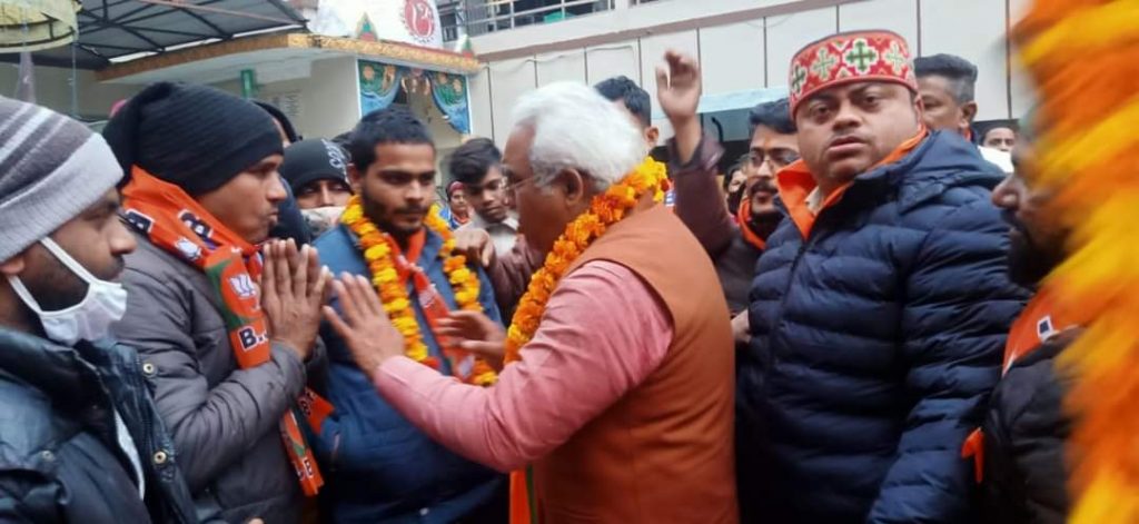 इस मौके पर भाजपा प्रदेश अध्यक्ष मदन कौशिक ने कहा कि भारतीय जनता पार्टी के विकास को देखकर कांग्रेस के कार्यकर्ताओं में बौखलाहट मची हुई है हरिद्वार की जनता का प्यार और आशीर्वाद पांचवी बार मिलने जा रहा है जिससे कांग्रेसियों में बौखलाहट मची हुई है उन्होंने कहा कि 20 वर्ष पूर्व हरिद्वार का नेतृत्व जब मुझे जनता ने सौंपा था तो उस 20 वर्ष के कार्यकाल में मैंने तीर्थ नगरी का चहुमुखी विकास किया है चाहे सड़कों का जाल हो या भूमिगत विद्युत लाइन या गैस पाइपलाइन स्कूल कॉलेज हाईवे का निर्माण भाजपा की सरकार में हुआ है। उत्तराखंड भाजपा कैबिनेट में हरिद्वार का पांचवी बार डंका बजेगा यह सब हरिद्वार की सम्मानित जनता का ही आशीर्वाद है इस अवसर पर स्थानीय पार्षद अनिल वशिष्ठ, महामंत्री तरुण नैय्यर,प्रवेश गिरी ,आलोक शर्मा, विमल त्यागी ,रविदास पप्पी, गौतम दिवाकर ,अंकित ठाकुर ,सुमित बंसल, सुरेंद्र जायसवाल ,गोविन्द,के नेतृत्व में सैकड़ों कार्यकर्ताओं ने नई बस्ती खड़खड़ी क्षेत्र पाल वाली गली गुसाई गली में जनसंपर्क किया।