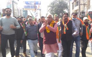 भाजपा प्रत्याशी मदन कौशिक ने आर्य नगर चौक से तुलसी चौक तक जनसंपर्क किया