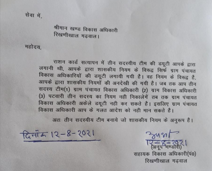 रिखणीखाल,प्रभुपाल सिंह रावत।प्रथम पक्ष- खंड विकास अधिकारी रिखणीखाल ने प्रखंड के समस्त ग्राम पंचायत विकास अधिकारियों को फ़रमान जारी किया…